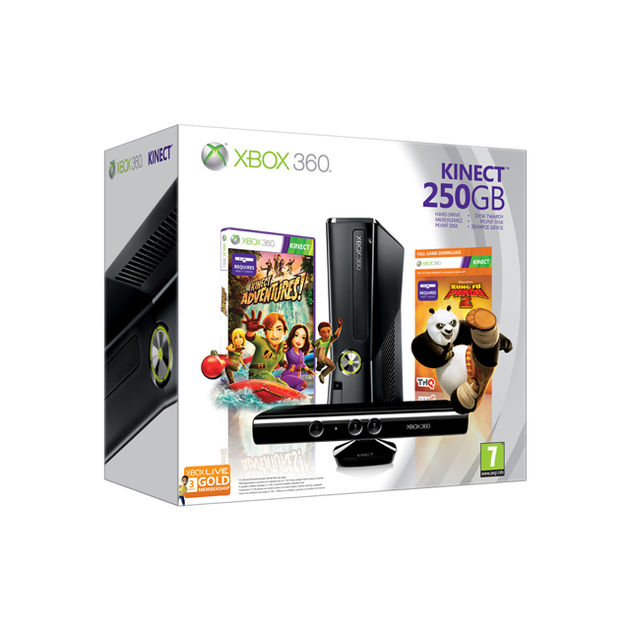 incluye la consola Xbox 360 4GB, el sensor Kinect, “Dance Central 2”, además del divertido título de aventuras para toda la familia “Kinect Adventures”.